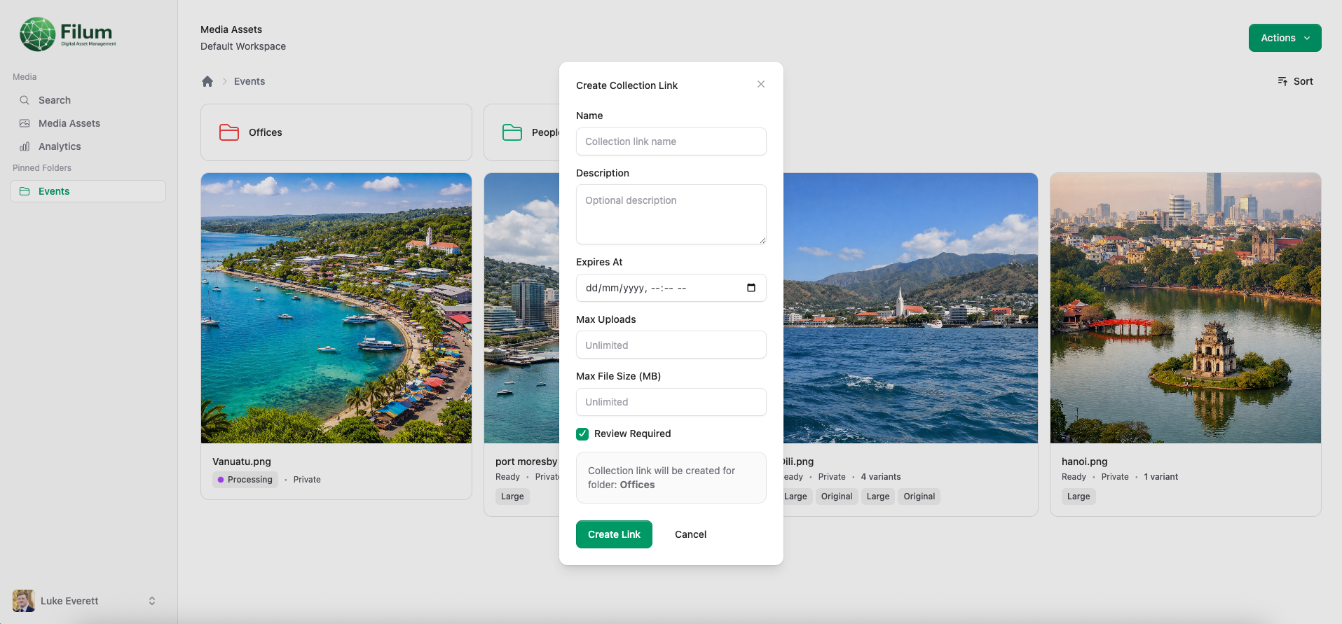 Collect files with upload links